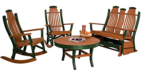- First image shows cedar primary color with green trim option. See second image for color swatches. Your family will enjoy gathering around this comfortable and durable table set for years! Please note this listing includes (1) Snack Table with Built-In Ice Bowl, (1) Bentwood Double Glider, and (2) Bentwood Rocking Chairs.