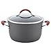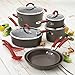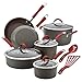 Rachael Ray Cucina Hard-Anodized Nonstick 12-Piece Cookware Set, Gray with Cranberry Red Handles