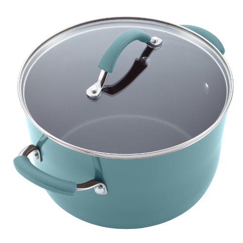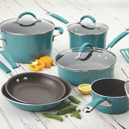 Rachael Ray Cucina Porcelain Enamel Nonstick 12-Piece Cookware Set, Agave Blue