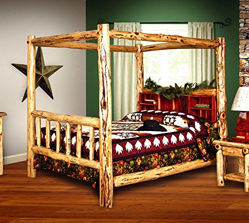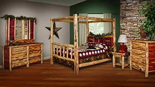 - All custom made. Professionally applied lacquer finish for added beauty and durability, Amish made, Complete with King size canopy bed, 6-drawer dresser with hutch (not including mirror), 4-drawer chest, and 1-drawer nightstand, Mortis and Tennon Joinery, Substantial and Sturdy Approx. 6" Diameter Red Cedar Logs, Due to variability in logs, each bed will be unique, may vary from photographs. Mattress, lamp, mirror and decorations not included. Proudly made in USA.