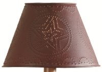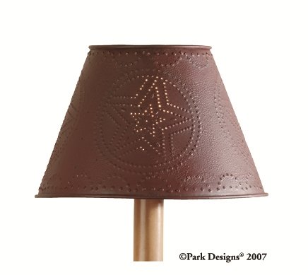 For the \"light amazing\" include one of our hand painted, metal punched shades. They are the ideal finishing touch for your primitive decor! The Red Star Punched Tin Shade is available in six\" (shown), 10\" and twelve\" sizes.Red Star Punched Tin six\" Lamp Shade six\" diameter at the bottom, four-1/two\" Tall, and 3\" diameter at the prime. This is a candle clip shade.Priced and sold individually. Made and produced by Park Patterns.