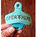 Rustic Cast Iron Wall Mount Bottle Opener Teal / Mint Open Here