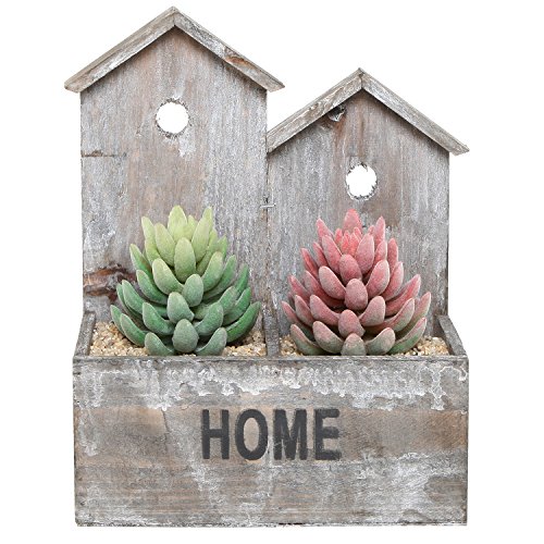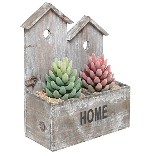 - A rustic finish wooden bird house design divided planter holder perfect for housing small plants or adding decorative accent to your home.