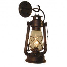 This 13-inch Lantern Wall Sconce has our rustic finish with the appear of an original oil lantern to offer that genuine touch to your room. The wall mounted rustic light comes with mounting hook, hardware, and is wired with a 25-watt candelabra bulb. This item is UL listed as an indoor, wall mounted fixture only.