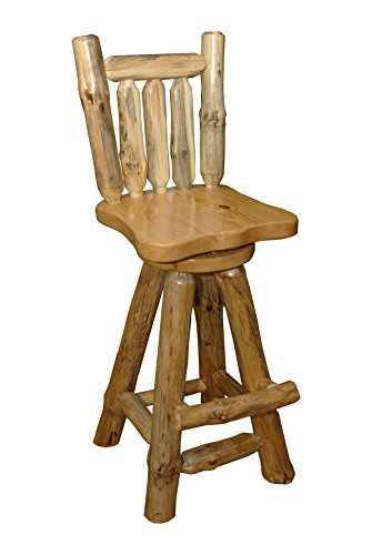 - You will enjoy the durability and beauty of this rustic pine log swiveling pub chair around your bar or in your kitchen for years to come.