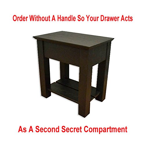 Obtainable in black enamel or autumn stain, this gorgeous hidden compartment nightstand is manufactured in Indiana\'s heartland by experienced Amish hands out strong oak and veneer core plywood (not particle board). It features a slide out top with a magnetic lock that reveals it really is secret compartment (the lock can be disabled for faster access). You can count on a substantial high quality finish with straightforward lines that will compliment most designs and tastes... Buy this unit without a drawer deal with and the drawer itself will act as a second hidden compartment (as pictured). Secret Compartment Dimensions: Principal Drawer 18 1/four\" W X 13 1/4\" D X 5\" H Inside Rear 14 three/4\" W X 3\" D X 5 3/4\" H Outside Dimemsions: 26 one/two\" W x 18 1/4\" D x 25\" H