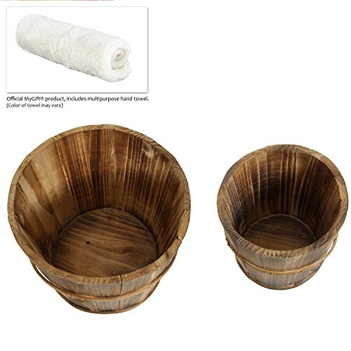 Natural country style and traditional shapes are brought with each other in this set of two wooden planter pots. These bucket design pots are constructed from a sturdy wood cautiously created with a normal finish and complemented with an accent wooden rim on the middle of each and every. one pot is bigger than the other for your comfort, permitting numerous alternatives for displaying live potted plants or for other organization or decorative employs for your home. This set of 2 makes the ideal present for the nature-lover within your residence or out, and operates effectively stylistically as a set or when separated. Carry the charm of the great outside into your residing area with these organically created rustic wood finish plant pots. **Official MyGift® merchandise includes multipurpose cleaning towel.** Plants pictured not included. Approximate Dimensions: (Massive pot) 8.5\" H x 9.75\" Diameter (Modest Pot) seven.\" H x 7.five\" Diameter.