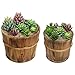 Set of 2 Country Rustic Brown Wood Succulent Pots Planters / Flower Buckets - MyGift®