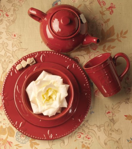 - Durable stoneware with decorative edges and rustic antiqued glazed finish