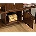 - Two central doors with grooved panels that open to two cubby storage compartments