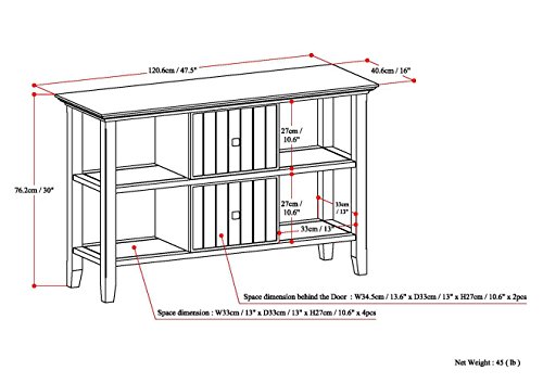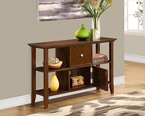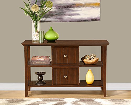 Simpli Home AXWELL3-002 Acadian Collection Console Table, Wealthy Tobacco Brown, 1-Pack See greater Acadian 48 inch wide Console Table in Tobacco Brown An accent table well worth repeating behind a sofa or in an entryway? Certain, why not. Seem no even more. The Acadian console table functions open shelves plus two large doors providing ample storage area. From the residing space, loved ones area to the entryway, this console table is a excellent way to acquire storage in virtually any room in your home you pick which 1. The Acadian Seem The Acadian look offers the best combination of rustic and modern design that is enhanced by its rich Tobacco Brown finish. The molded prime profile, beadboard type details and elegantly tapered legs complement the all round appear of the collection although the Brushed Nickel hardware adds a modern flair to this beautiful piece. Rich in presence, this collection is timeless for the most discerning decorator. The assortment is created from reliable plantation grown pine and is finished with tough NC lacquer best coat. The Acadian Assortment If you adore the look of your new Console Table, we have numerous a lot more objects in the Acadian Collection to complete your room. These pieces include: the Acadian Coffee Table, Finish Table, Medium Storage Cabinet, Entryway Bench, Television Stand, Tall Television Stand, Nine Cube Bookcase and Ladder Shelf. Visit our Simpli Home Brand Web page to see them all. See larger Practical Storage Resolution The Acadian Console Table functions loads of open and closed storage area. Two door open to reveal storage region for remote controls, magazines and decorative things. Tobacco Brown Finish Get pleasure from the richness of the Tobacco Brown Finish. Sealed with a premium NC Lacquer Coating. See more substantial Rustic and Modern Styling The Acadian Console Table was created to blend effortlessly into a selection of living and loved ones area settings. With touches of rustic and contemporary variations, the Acadian collection is a sensible option for your residence furnishing requirements. See larger Beadboard Type Doors & Molded Top The styling of the Acadian Collection doors, legs and leading details blend properly to develop a harmonious look. Modern Brushed Nickel Hardware Brushed Nickel knobs accent and boost the overall look of the assortment. View larger Perfectly Sized This lovely and versatile piece is huge sufficient to suit your needs yet tiny enough to match easily in your space.