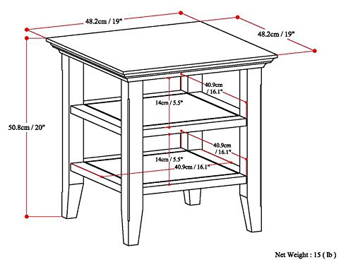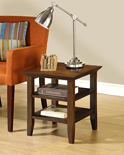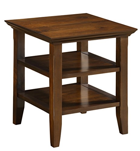 Simpli Property AXWELL3-003 Acadian Collection 19-Inch by 19-Inch End Table Acadian 19 inch Square End Table in Tobacco Brown Good items truly do come in little packages. Nothing at all could illustrate this far better than the layout of our Acadian Finish Table which characteristics two open shelves offering loads storage room. The table is sized completely to allow room for a table lamp, book and family images. A ideal companion to any sofa or arm chair. The Acadian Seem Get pleasure from the richness of the Tobacco Brown Finish. Produced from sound plantation grown pine. Finished with tough NC lacquer leading coat. See greater Rustic and Contemporary Styling With touches of rustic and contemporary variations, the Acadian assortment is a wise selection for your home furnishing wants. The styling of the legs, grooved shelves and molded prime information blend completely to produce a harmonious search. If you really like the search of your new Finish Table, we have a lot of more items in the Acadian Assortment to comprehensive your area. These pieces consist of: the Acadian Coffee Table, Console Table, Medium Storage Cabinet, Entryway Bench, Television Stand, Tall Tv Stand, 9 Cube Bookcase, Cross Hatch Bookcase and Ladder Shelf. Visit our Simpli Home Brand Webpage to view them all. View more substantial Flawlessly Sized The Acadian End Table was designed to mix effortlessly into a range of residing and loved ones room settings. This gorgeous and versatile piece is huge adequate to suit your wants yet tiny sufficient to fit easliy in your room.