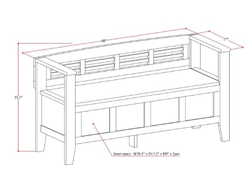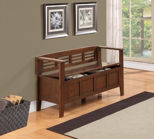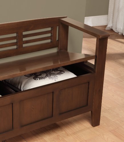 Simpli Property Adams Entryway Storage Bench, Medium Rustic Brown View greater Adams 48 inch wide Entryway Bench in Medium Rustic Brown A great 1st impression is always essential... we realize. We made the Adams Storage Bench to make certain that the entrance to your property is something you can be proud of. This stylish bench enables your inner designer to shine by means of although making additional storage and seating for your entryway or mudroom. \"Type follows function\" style guidelines apply right here as the bench characteristics a practical flip up lid enabling for easy retrieval of posts from the dual storage compartment below. The Adams Look The warmth and rustic elegance of the Adams Storage Bench is enhanced by its Medium Rustic Brown finish. The shaker style front panel and a horizontal slat back provide the excellent blend of rustic and modern fashion and will confident to include a dynamic flair to your entryway or mudroom. The bench is manufactured from strong plantation grown pine and is finished with sturdy NC lacquer prime coat. Simpli House Entryway Benches Simpli Home has a wide range of Entryway Benches to select from. These include: Acadian, Adams, Adrien, Arlington, Artisan, Amherst, Brooklyn, Burlington, Carlton, Dakota, Dorset, Greyson, Sea Mills, Warm Shaker and Williamsburg Entryway Bench. We are specified you will uncover the excellent piece to suit your special fashion. Visit our Simpli Property Brand Web page to see them all. See more substantial Practical Storage Answer The Adams Entryway Bench characteristics a convenient lift up lid, permitting for effortless retrieval of articles from the dual storage compartment under. View more substantial Medium Rustic Brown Finish Get pleasure from the richness of the Medium Rustic Brown Finish. Sealed with a premium NC Lacquer Coating. See larger Rustic and Modern Styling The Adams Entryway Bench was designed to blend effortlessly into a range of entryway and mudroom settings. With touches of rustic and modern variations, the Adams Bench is a sensible choice for your property furnishing demands. See more substantial Shaker Type Panel & Slat Back The front panel, arms and back details blend completely to produce a harmonious seem. View greater Child Safety Lid Hinge To avert any mishaps, our Adams Bench comes with a No Slam Kid Safety Hinge - which only permits the lid to near slowly. See larger Properly Sized Broad enough to seat two individuals comfortably and narrow sufficient in depth to fit nicely in most entryway or mudrooms.