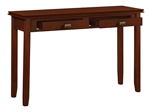 Simpli HomeAXCHOL003 Artisan Assortment 45-Inch by sixteen-one/two-Inch Console Table, Medium Auburn Brown View more substantial Artisan 45 inch broad Console Table in Medium Auburn Brown Looking for a versatile accent table that can be employed just about all over the place? Look no even more. No matter whether in your entryway, behind your sofa or in a hallway, The Artisan Console Table is a perfect match. It characteristics two huge drawers providing ample storage space. From the residing area, family area to the entryway, this console table is a excellent way to acquire storage in nearly any space in your residence, you decide on which a single. The Artisan Appear The Artisan Appear brings a warm modern styling to your house with its glazed Medium Auburn Brown finish. The assortment is defined by a clean edged table top, tapered legs and rectangular bronzed knobs. Its distinctive style is both warm and strong and is a single of our most well-known collections. The collection is made from sound plantation grown pine that is completed with durable NC lacquer top coat. The Artisan Assortment If you love the appear of your new Console Table, we have a lot of much more items in the Artisan Collection to comprehensive your room. These pieces contain: the Artisan Coffee Table, End Table, Medium Storage Cabinet, Entryway Bench, Tall Television Stand and 9 Cube Bookcase. Check out our Simpli Home Brand Web page to view them all. View more substantial Practical Storage Answer The Artisan Console Table features lots storage room. Two drawers open to reveal storage spot for remote controls, magazines and decorative things. View more substantial Medium Auburn Brown Glazed Finish Appreciate the richness of the Medium Auburn Brown Finish. Glazed for additional depth and sealed with a premium NC Coating. See greater Informal Modern Styling The Artisan Console Table was made to mix into a variety of residing, loved ones area and entryway settings. With its informal contemporary design, the Artisan assortment is a relaxed search that fits anywhere. See larger Clean Edged Table Leading & Tapered Legs The styling of the Artisan Collection drawers, legs and top details blend flawlessly to produce a harmonious appear. View larger Antique Bronze Hardware Antique Bronze knobs accent and improve the total look of the collection. View bigger Flawlessly Sized This gorgeous and versatile piece is massive adequate to suit your needs but modest adequate to fit very easily in your area.