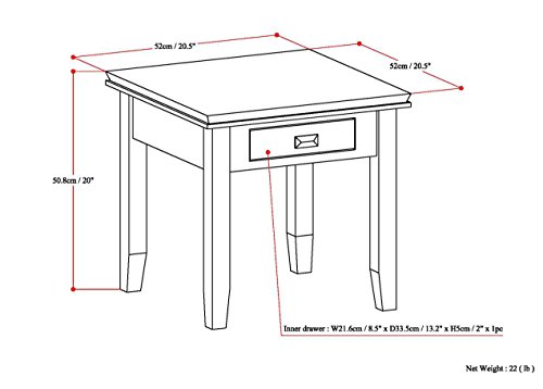 Simpli Residence AXCHOL002 Artisan Assortment twenty-one/2-Inch by twenty-one/two-Inch End Table, Medium Auburn Brown View greater Artisan twenty.5 inch Square Finish Table in Medium Auburn Brown Very good items genuinely do come in small packages. Nothing could illustrate this much better than the layout of our Artisan End Table which attributes a single drawer offering plenty storage space. The table is sized properly to let area for a table lamp, guide and loved ones photos. A ideal companion to any sofa, arm chair or as a side table in your bedroom. The Artisan Assortment Appreciate the richness of the Medium Auburn Brown Finish. Manufactured from reliable plantation grown pine. Glazed for additional depth and sealed with a premium NC Coating. See bigger Informal Contemporary Styling The Artisan Seem brings a warm contemporary styling to your property with its glazed Medium Auburn Brown finish. The assortment is defined by a clean edged table best, tapered legs and rectangular bronzed knobs. Its distinctive style is both warm and strong and is 1 of our most popular collections. The Artisan End Table was made to mix into a range of residing and family members area settings. With its casual modern type, the Artisan collection is a relaxed search that fits anyplace. View bigger Perfectly Sized This beautiful and versatile piece is huge adequate to suit your requirements nevertheless small adequate to match easily in your room. If you really like the seem of your new Console Table, we have many far more items in the Artisan Collection to total your area. These pieces incorporate: the Artisan Coffee Table, Finish Table, Medium Storage Cabinet, Entryway Bench, Tall Tv Stand and 9 Cube Bookcase. Check out our Simpli House Brand Webpage to see them all.