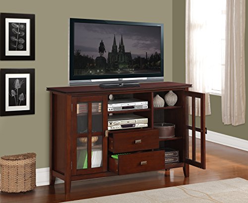 Simpli Home Artisan TV Stand, 54"W x 35"H, Medium Auburn Brown