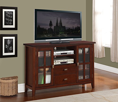 See bigger Artisan 53 inches wide x 35 inches substantial Tall Television Stand in Medium Auburn Brown You just bought the ultimate massive flat display Television. Now what to do? Hang it on the wall? No, you want the perfect Tv Stand for storage and to enhance your viewing pleasure. Look no further than our most common Artisan Television Stand. It is properly sized for TVs up to 60 inches. The 35 inch height puts the Tv at a degree that is excellent for comfortable viewing. The Artisan Television Stand has a lot of storage and room for all your media and gaming gadgets. It has a huge centrally located open area with one adjustable shelf and two drawers. The two massive side storage cabinets open to two adjustable shelves. The unit attributes cord management cutouts for effortless installation of Television and media parts. The Artisan Look The Artisan Look brings a warm modern styling to your home with its glazed Medium Auburn Brown finish. The assortment is defined by a clean edged prime, tapered legs and rectangular bronzed knobs. Its distinctive fashion is the two warm and inviting. It is also 1 of our most well-liked collections. The assortment is made from solid plantation grown pine that is finished with durable NC lacquer top coat. The Artisan Collection If you love the appear of your new Tall Tv Stand, we have a lot of far more products in the Artisan Collection to full your area. These pieces incorporate: the Artisan Coffee Table, End Table, Console Table, Medium Storage Cabinet, Entryway Bench and 9 Cube Bookcase. Go to our Simpli House Brand Page to see them all. View larger Lots of Storage for all Media and Gaming Products The Artisan Tall Television Stand has several open and closed storage compartments and drawers to match all of your media and gaming units. See greater Medium Auburn Brown Glazed Finish Get pleasure from the richness of the Medium Auburn Brown Finish. Glazed for additional depth and sealed with a premium NC Coating. View bigger Informal Contemporary Styling The Artisan Television Stand was made to blend into a selection of residing and family members room settings. With its informal contemporary fashion, the Artisan assortment is a relaxed appear that fits anywhere. See more substantial Clean Edged Top & Glass Mullion Framed Doors The styling of the Artisan Assortment drawers, doors, legs and prime details blend flawlessly to produce a harmonious look. See more substantial Antique Bronze Hardware Antique Bronze knobs accent and improve the all round seem of the collection. View greater Perfect for TVs up to 60 inches Added broad and further higher, the Artisan Television Stand will accommodate TVs up to 60 inches. Generously proportioned to match all media and gaming gadgets.
