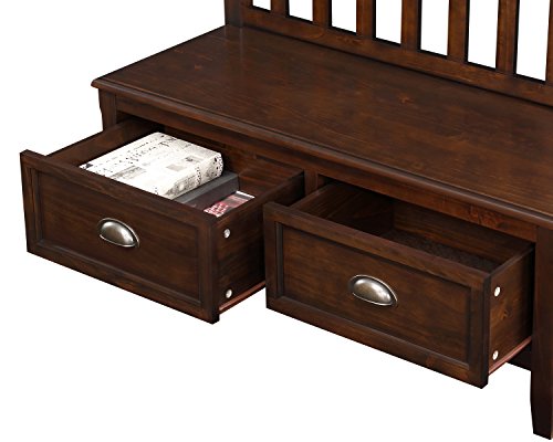 Simpli Home Burlington Entryway Storage Bench with Drawers, Espresso Brown