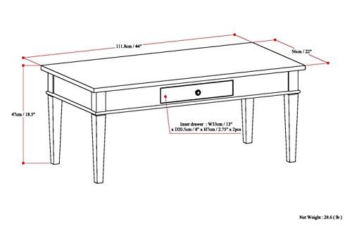 Simpli Residence Carlton Collection Coffee Table See greater Carlton 44 inch wide Coffee Table in Tobacco Brown Spectacular. There is no other word. The Carlton Coffee Table will get you observed. With a dramatic presence and exclusive appeal, this coffee table will really wow your pals and household. It is completely practical as properly with a single drawer that opens to provide ample storage choices for remote controls, magazines and the like although leaving the table surface clutter-free of charge. This stunning and versatile coffee table will match very easily in your area...and flip heads at the exact same time. The Carlton Search The Carlton appear is defined by its wealthy tobacco brown finish and shaker type sensibility. The assortment is both traditional and contemporary and enhances any area setting. The distinctive double molded prime profile and tapered legs improve the all round appear of the collection. The decorative bronze knobs add a classic component to these stunning furniture pieces. Wealthy in presence, this assortment is timeless for the most discerning decorator. The assortment is manufactured from sound plantation grown pine and is completed with resilient NC lacquer prime coat. The Carlton Collection If you enjoy the search of your new Coffee Table, we have numerous far more objects in the Carlton Assortment to total your space. These pieces contain: the Carlton Finish Table, Console Table, Medium Storage Cabinet, Entryway Bench, Tv Stand, Tall Tv Stand, Nine Cube Bookcase and Desk. Check out our Simpli Home Brand Webpage to view them all. See greater Practical Storage Answer The Carlton Coffee Table characteristics loads of storage space. 1 drawer on each side opens to reveal storage region for remote controls, magazines and decorative things. See larger Tobacco Brown Finish Enjoy the richness of the Tobacco Brown Finish. Sealed with a premium NC Coating. Classic and Contemporary Styling The Carlton Coffee Table was developed to mix effortlessly into a selection of living and household area settings. With touches of classic and contemporary types, the Carlton collection is timeless. See larger Double Molded Best Detail Sets this Assortment Apart The Carlton Assortment double molded best detail in blend with its shaker fashion front and side panels and finely tapered legs combine collectively for an impactful decorative presence. View greater Decorative Bronze Hardware Decorative Bronze round knobs accent and improve the all round look of the collection. View more substantial Completely Sized This stunning and versatile piece is large adequate to suit your demands but small enough to match effortlessly in your area.