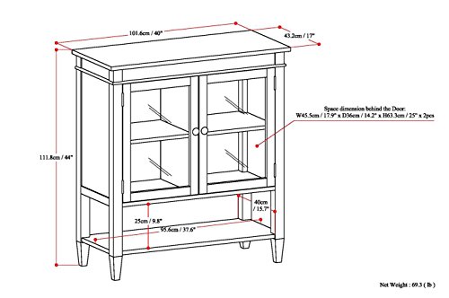 Simpli Home Carlton Collection Storage Media Cabinet and Buffet, Medium, Dark Tobacco Brown See larger Carlton 40 inch wide Medium Storage Cabinet in Tobacco Brown You detest clutter and mess - that\'s great, so do we. It is for this explanation we created the Carlton Medium Storage Cabinet. Two glass doors open to one particular adjustable shelf making it possible for you to reconfigure the layout to suit your needs although the open bottom shelf offers added storage room. Display your fine china, decorative accents or even movies on dedicated show space for a clean, distinctive appear. The Carlton Seem The Carlton appear is defined by its wealthy tobacco brown finish and shaker style sensibility. The collection is each traditional and modern and enhances any room setting. The distinctive double molded top profile, the shaker type doors and tapered feet, enhance the general search of the collection. The decorative bronze knobs add a traditional element to these gorgeous furnishings pieces. Rich in presence, this assortment is timeless for the most discerning decorator. The assortment is made from solid plantation grown pine and is completed with sturdy NC lacquer leading coat. The Carlton Collection If you enjoy the search of your new Medium Storage Cabinet, we have a lot of more items in the Carlton Assortment to complete your space. These pieces consist of: the Carlton Coffee Table, Finish Table, Console Table, Entryway Bench, Tv Stand, Tall Television Stand, Nine Cube Bookcase and Desk. Visit our Simpli Property Brand Web page to view them all. View more substantial Practical Storage Solution The Carlton Medium Storage Cabinet attributes two adjustable shelves allowing you to modify your room to suit your wants. See larger Tobacco Brown Finish Get pleasure from the richness of the Tobacco Brown Finish. Sealed with a premium NC Coating. See greater Classic and Modern Styling The Carlton Medium Storage was created to be a fantastic addition to any kitchen, dining and living area settings. With touches of classic and contemporary styles, the Carlton assortment is timeless. See larger Double Molded Leading Detail Sets this Assortment Apart The Carlton Assortment double molded leading detail in combination with its shaker fashion front and side panels and finely tapered legs mix together for an impactful decorative presence. View more substantial Decorative Bronze Hardware Decorative Bronze round knobs accent and enhance the total seem of the collection. See larger Properly Sized This stunning and versatile piece is big enough to suit your storage needs however tiny adequate to fit effortlessly in your room.
