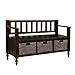 Simpli Home Dakota Entryway Storage Bench w/ 3 Hyacinth Baskets, Dark Brown