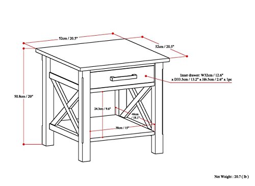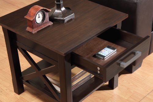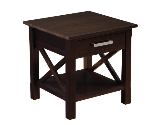 Simpli Home Kitchener Finish Table, Dark Walnut Brown View bigger Kitchener twenty.5 inch Square Finish Table in Dark Walnut Brown Great items actually do come in little packages. Absolutely nothing could illustrate this greater than the design of our Kitchener Finish Table which functions 1 drawer and one bottom shelf delivering lots storage room. The table is sized flawlessly to permit area for a table lamp, book and family members pictures. A ideal companion to any sofa, arm chair or bed. The Kitchener Seem The timeless and classic appear of the Kitchener Assortment with its Dark Walnut Brown finish is best for any contemporary or transitional setting. It has clean lines, desirable Brushed Nickel drawer pulls, bottom shelf and stylish X style details. The assortment is created from strong plantation grown pine and is completed with a durable NC lacquer prime coat. The Kitchener Collection If you love the seem of your new Finish Table, we have far more products in the Kitchener Assortment to total your room. These pieces incorporate: the Kitchener Coffee Table, Console Table, Medium Storage Cabinet, Tall Television Stand and 60 inch Television Stand. Go to our Simpli Home Brand Page to view them all. See greater Practical Storage Answer The Kitchener End Table characteristics one particular drawer and a massive bottom shelf delivering plenty storage space for magazines and decorative items. See greater Dark Walnut Brown Finish Take pleasure in the deep richness of the Dark Walnut Brown Finish. Sealed with a premium NC Lacquer Coating. View larger Classic Contemporary Styling The Kitchener End Table has classic modern styling that is timeless. It blends effortlessly in most living and household area settings. With its clean lines and contemporary search, the Kitchener collection is a smart decision for your property furnishing requirements. View larger X Detail, Notched Legs and Bottom Shelf The styling of the Kitchener Assortment drawers, legs and best particulars blend properly to create a harmonious search. View greater Brushed Nickel Hardware Brushed Nickel pulls accent and improve the total seem of the assortment. View larger Flawlessly Sized This gorgeous and versatile piece is large sufficient to suit your wants however modest ample to match easily in your space.