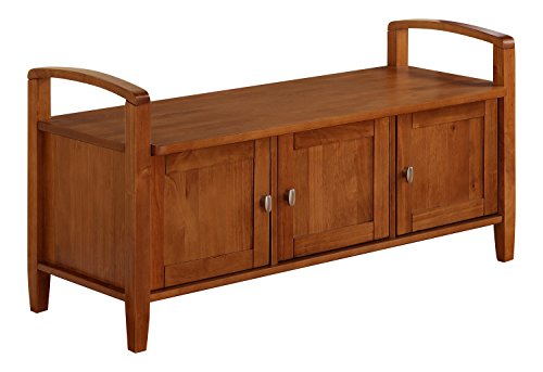 Simpli Home Warm Shaker Entryway Storage Bench, Honey Brown