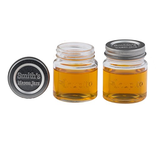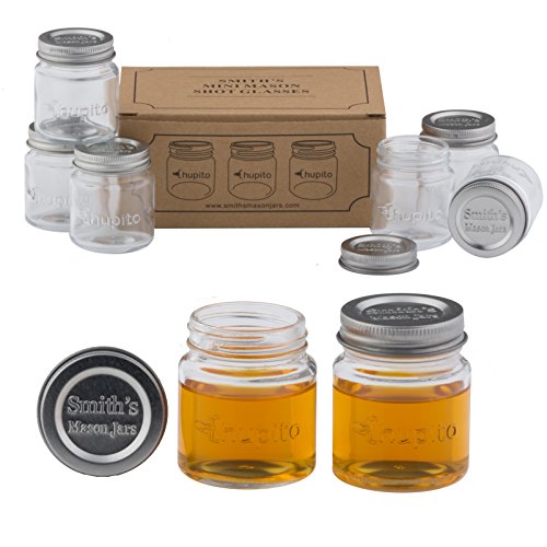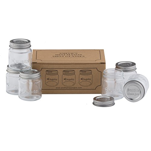 Smiths Mini Mason Jar "Chupito" Shot Glasses with Lids Set of 6 - 2oz Per Shot Glass