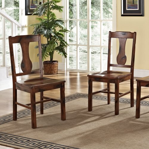 These charming wood dining chairs are an irresistible addition to any dining room or sitting location. The eye-catching, dark oak finish and distressed detailing develop a warm, rustic feel and the sound development will last for many years to come. Comfortable and practical, these excellent chairs are a best accent to any setting.attributes: stylish, modern layout. Strong wood development. Eye-catching, dark oak finish. Purposeful distressing produces a warm, rustic truly feel . Curving back detail. Sturdy, sound construction. Set contains two chairs. Ships ready-to-assemble with needed hardware and resources. Assembly instructions integrated with toll-totally free number and on the web supportsingle chair dimensions: 21-inch w by 18-inch d by 39-inch h weight: 20-pound.