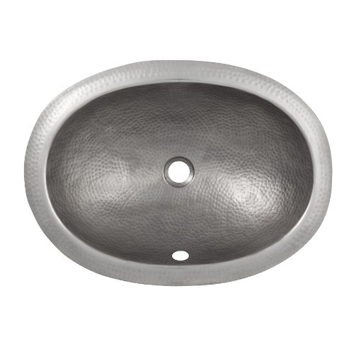 The Copper Factory CF152SN Solid Hand Hammered Copper Oval Undermount Lavatory Sink, Satin Nickel