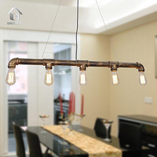 UNITARY BRAND Vintage Metal Water Pipe Pendant Light Max 200W With 5 Lights Black with Copper Finish