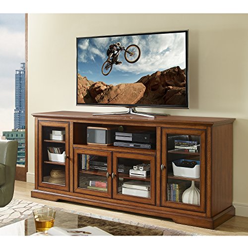 Display your entertaining room in fashion with this highboy media stand. Its 4 storage cabinets provide ample storage space to property your favorite motion pictures, elements and game consoles. Features adjustable shelving behind glass-paned doors and a constructed in cable management method. Crafted from substantial-grade MDF, this stand will accommodate most flat-panel TVs up to 70 Inch.