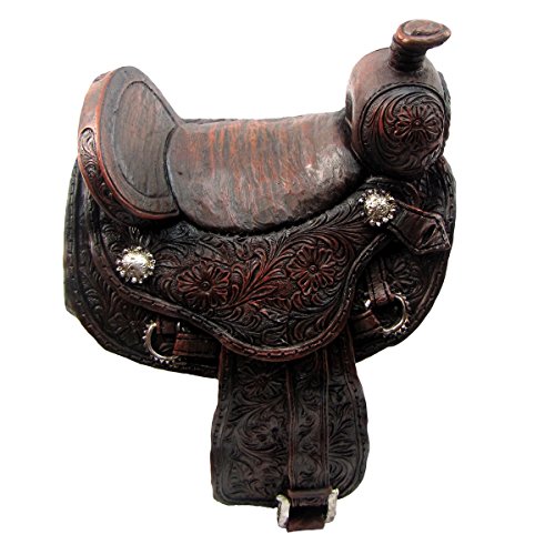 - Tough cast resin construction with excellent details on the toilet paper holder- looks like a western saddle with chrome metal Concho, D Rings and Stirrups,and intricate leather work on the saddle and fenders