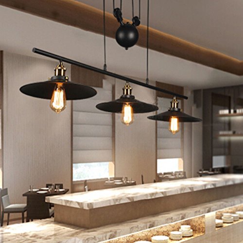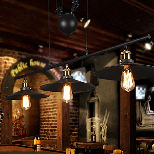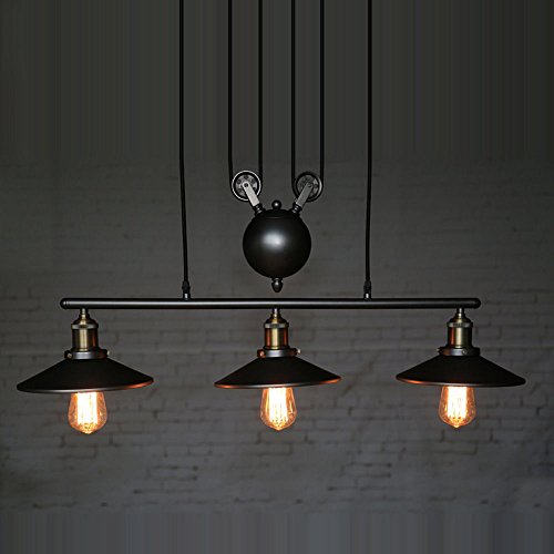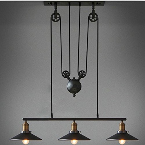 WinSoon Creative Pulley Design Black Iron Painted 3-Lights Island Light Bar Retro Hanging Lamp 3 Heads