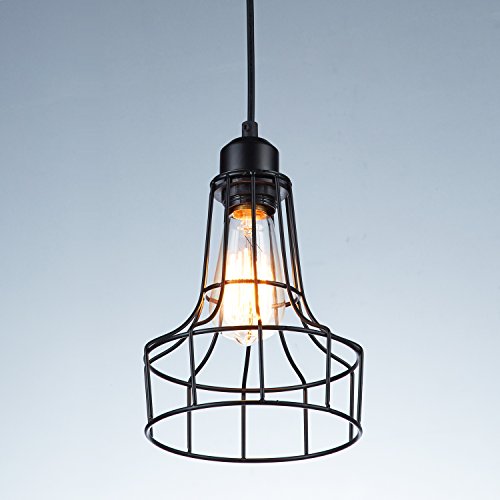 YOBO Lighting Vintage Black Wire Cage Hanging Pendant Lighting